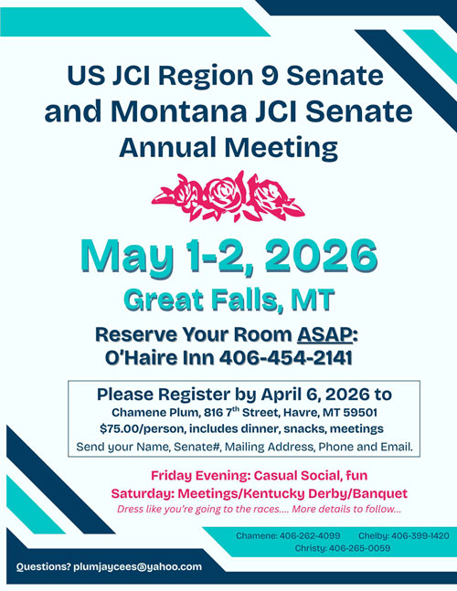 | Home | About Us | News/Upcoming Events | Scholarship Forms/Senatorship Information | Montana JCI Products | Links |
